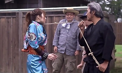 Tidy Japanese uniform JK kneels down to a big penis dude and gives a rich handjob service nipple licking