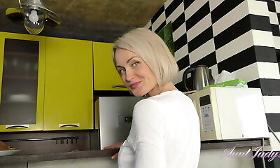 AuntJudys - Gorgeous 40yo Supah-Milf Natie gets off in the Kitchen