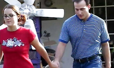 Barely Eighteen mega-bitch in specs blows pop's big stiff cock then gets cum in pink pussy
