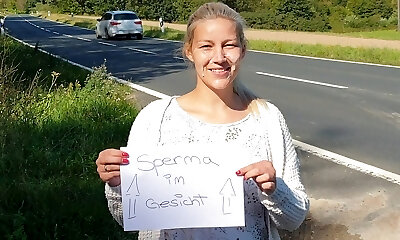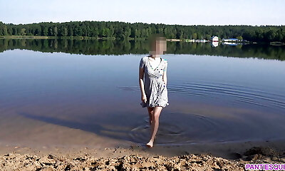 Chinese big-boobed babe was walking around the mall and flashing her underpants to find two men who would fuck her