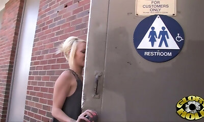 Yam-sized black dick butt fucks this sweet towheaded girl at a gloryhole