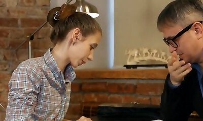 Pervy tutor cums in his bony student !